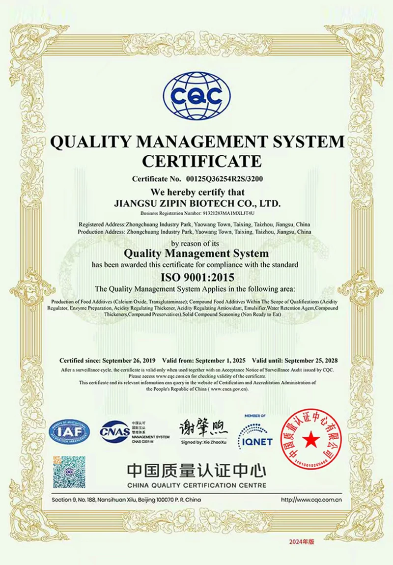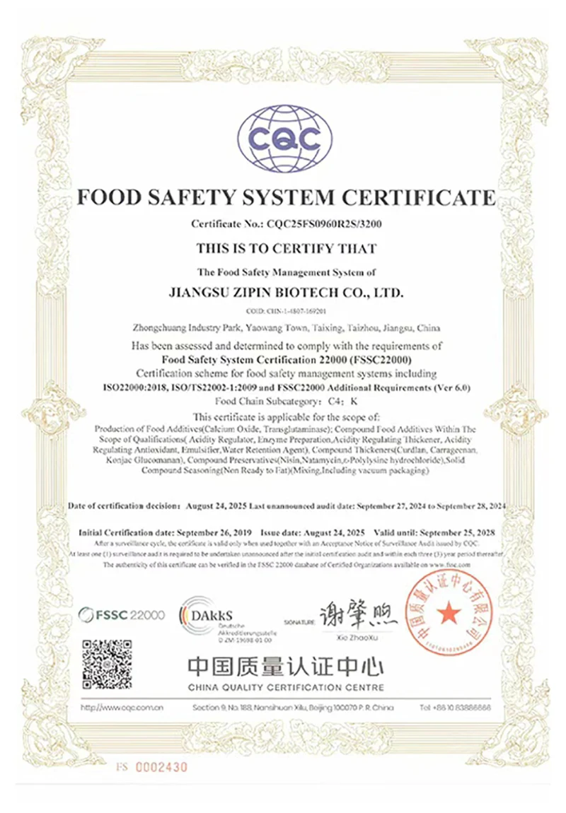 江苏紫品生物科技有限公司成立于2016年,占地面积20000平方米。作为一家现代化私营企业,我们现在主要从事食品添加剂的研发、生产和销售。我们的主要产品是转谷氨酰胺酶, 凝胶多糖, ε-聚赖氨酸、乳酸链球菌素、纳他霉素等食品添加剂。